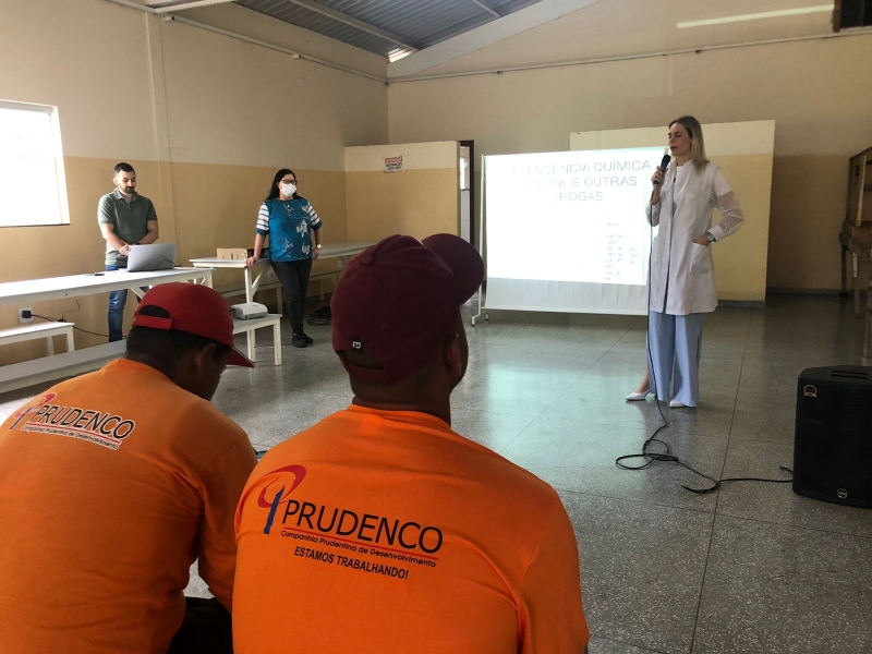 Com o objetivo de ressaltar a importância do Dia Nacional de Combate ao alcoolismo e outras drogas, lembrado no dia 20 de fevereiro, os coletores da Prudenco receberam na manhã desta sexta-feira (17/02) uma palestra sobre a importância da luta contra as práticas da ingestão de substâncias, principalmente no ambiente de trabalho. O encontro contou com a presença do diretor administrativo, Dr. Valdecir Vieira, e foi dirigido pela assistente social, Hellen Romero, psicóloga, Maria Clara Favarão Crespi, além das profissionais da saúde dos caps municipais, assistente social, Maria José Barreto e enfermeira Roberta Zancanaro.