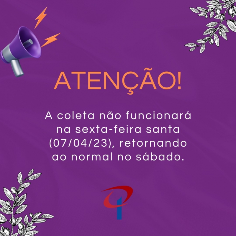 Prudenco informa: A coleta não funcionará no feriado de sexta-feira santa (07/04/23), devendo voltar ao normal no sábado.