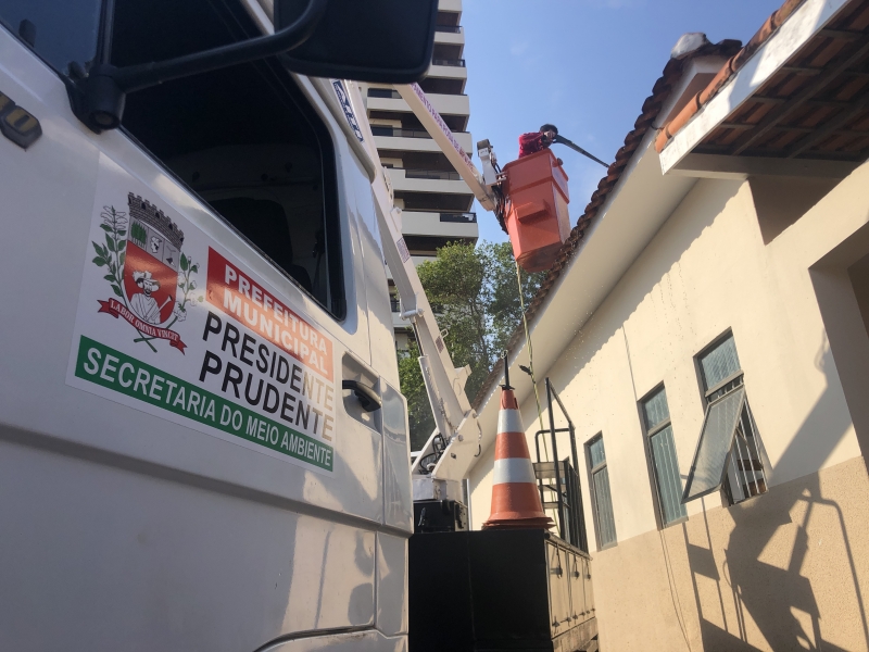 Foram realizadas podas de galhos das árvores, higienização e limpeza das telhas da Companhia. O diretor presidente dr. Valdecir Vieira acompanha os serviços e ressalta a importância das podas realizadas para cuidados com a rede elétrica e também da limpeza das telhas que além de higienizar, dá um melhor aspecto de beleza para a sede. Destaca-se nos serviços realizados a interação e apoio entre a Prefeitura através das suas secretarias com a PRUDENCO.